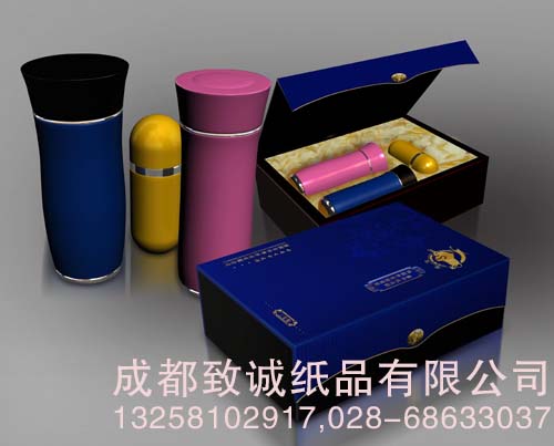 成都致誠紙品有限公司為客戶定制的此款包裝為一款高檔的保溫杯禮品盒,禮品盒里面共放3個(gè)保溫杯,分別是爸爸、媽媽、小孩的。
