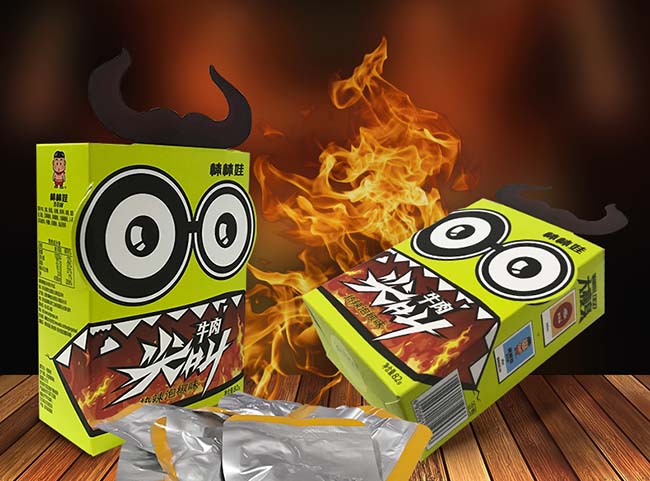 第二、趣味性包裝與商品是一個(gè)整體,消費(fèi)者在支付商品價(jià)格的同時(shí)也為包裝買了單,因此包裝也就具有了一定的價(jià)值,“多感官”包裝設(shè)計(jì)以創(chuàng)新的思維進(jìn)行商品包裝,使包裝也成為消費(fèi)品,商品包裝不再是單純的包裝材料,而是具有趣味性、設(shè)計(jì)感的商品?!岸喔泄佟卑b設(shè)計(jì)以更新穎、更大膽的視覺效果或接觸方式,使商品有別于普通商品。如圖二,棒棒娃系列的一款牛肉紙盒包裝,設(shè)計(jì)師用插畫的手法,有趣的吸引了消費(fèi)者的注意,尤其是樂于追逐時(shí)尚的年輕人,和好奇得的兒童,這樣有趣、新奇的設(shè)計(jì)方式使這款牛肉包裝盒明顯區(qū)別于其他糖果包裝。